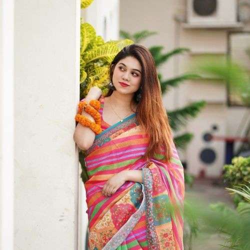 বাহারি ডিজিটাল প্রিন্টেড সফট সিল্ক শাড়ি – (কোড 407)