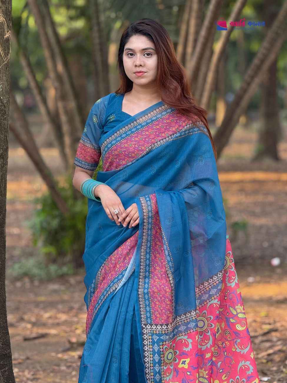 🔹 ব্লাউজ: সেম-ম্যাচিং ব্লাউজ পিস সংযুক্ত।