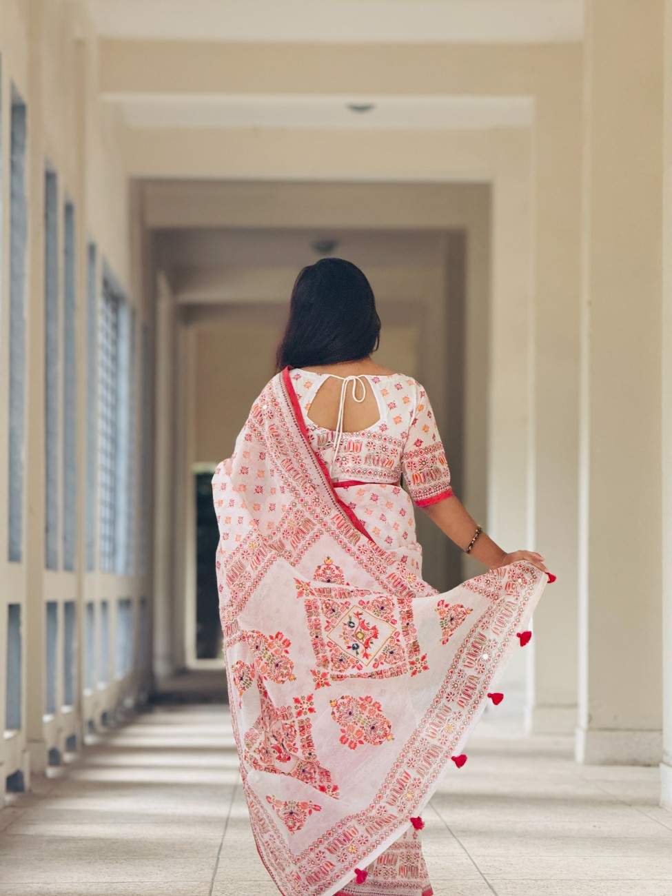 🔸 সুন্দর সুতার ও এম্ব্রয়ডারির কাজ: পুরো শাড়িতে সূক্ষ্ম হাতে কাজ করা নকশা