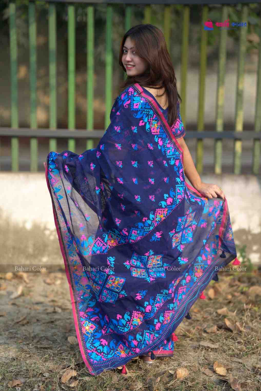 🔸 সুন্দর সুতার ও এম্ব্রয়ডারির কাজ: পুরো শাড়িতে সূক্ষ্ম হাতে কাজ করা নকশা