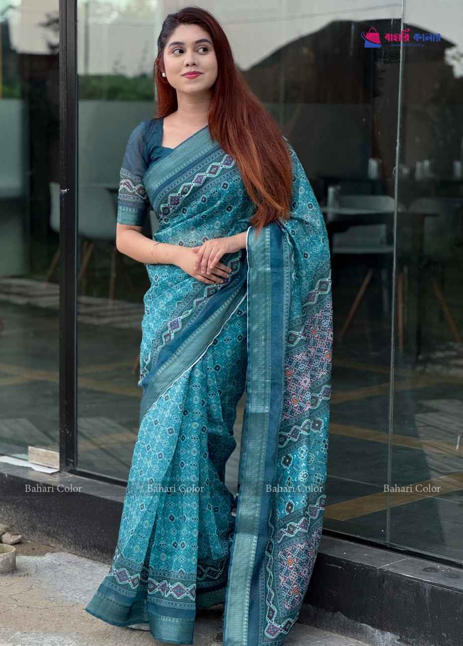 জরি সুতা কাতান পার ডিজিটাল প্রিন্ট সফ্ট সিল্ক শাড়ি
