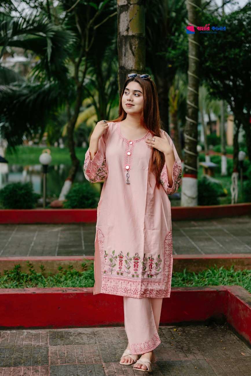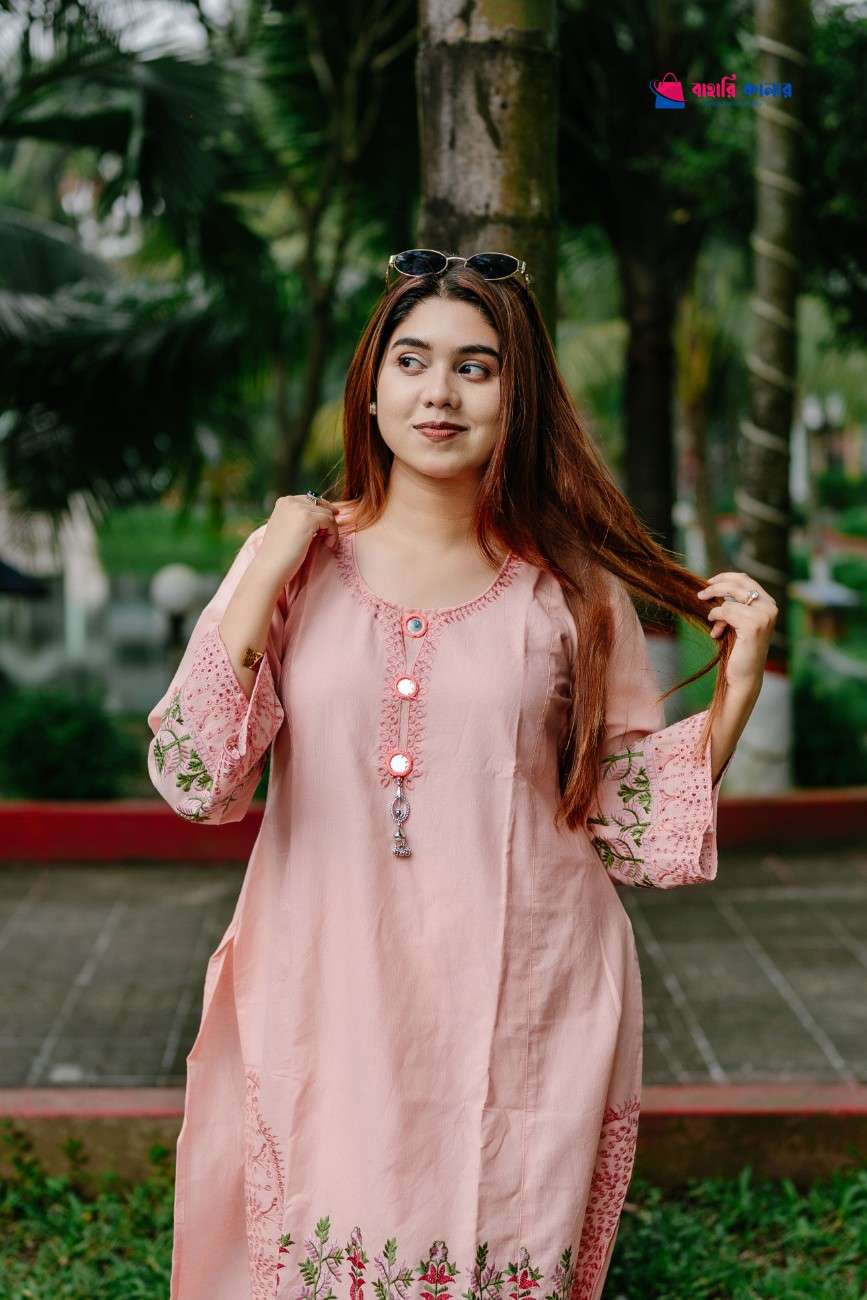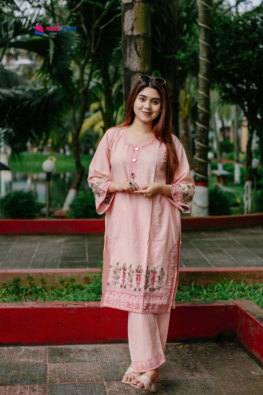 প্রিমিয়াম সুইটস কটন ফেব্রিক দিয়ে তৈরি এই পোশাকটি রাখবে সম্পূর্ণ আরামদায়ক, পাশাপাশি এর মনোমুগ্ধকর বোরিং ও এমব্রয়ডারি ওয়ার্ক আপনার লুকে আনবে এক অনন্য সৌন্দর্য।